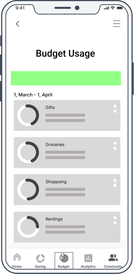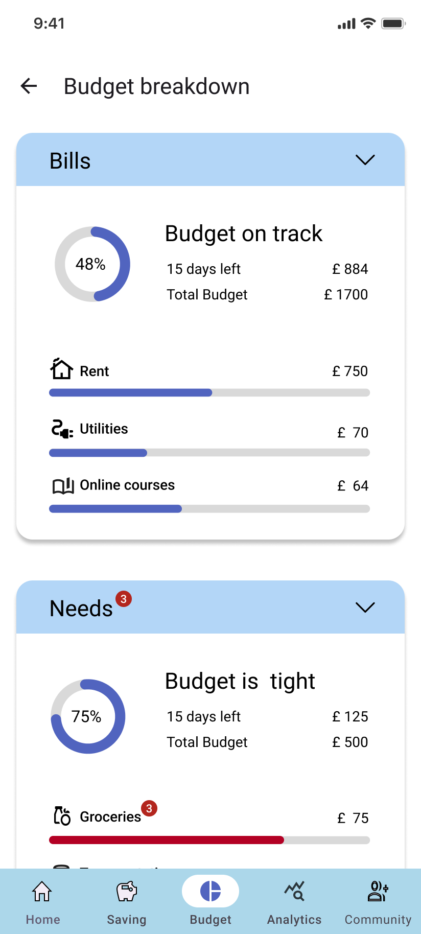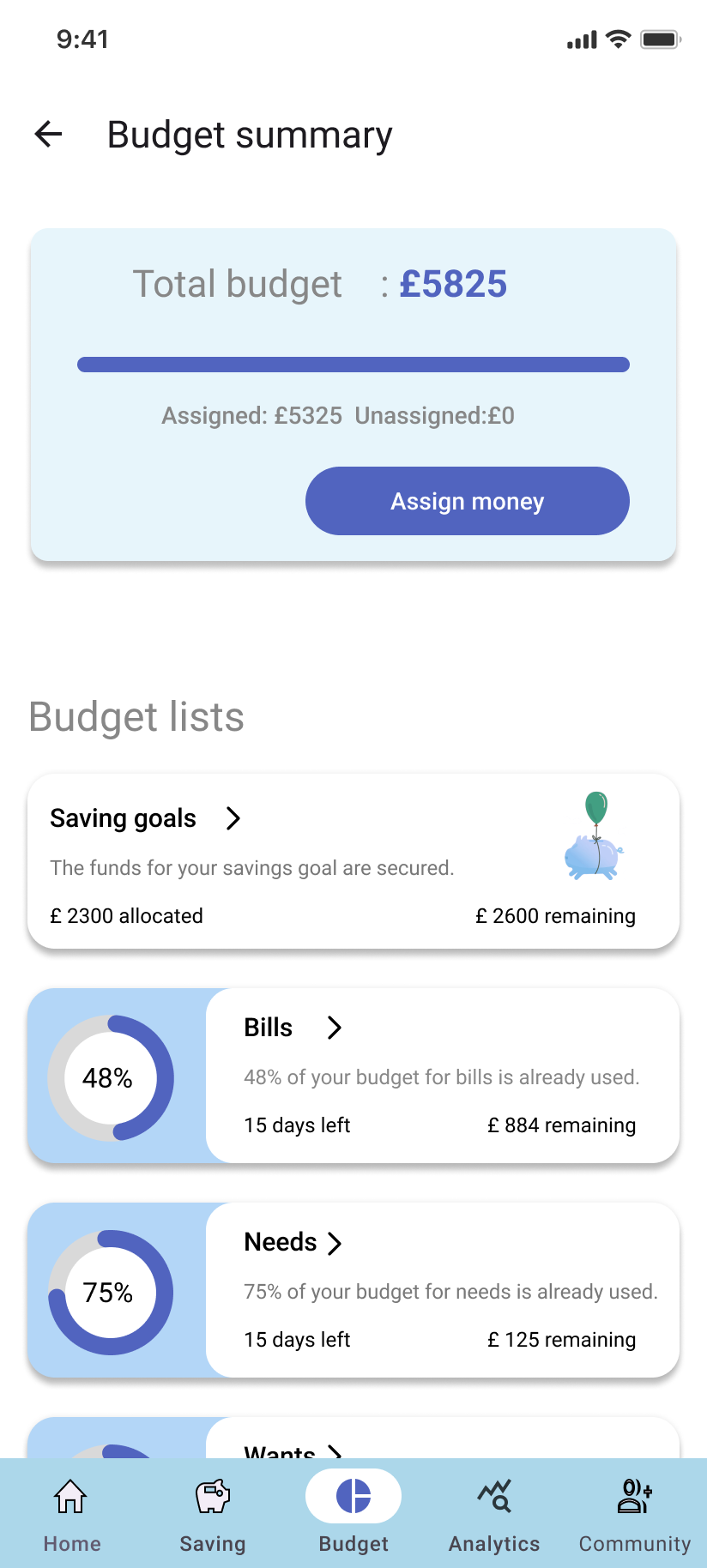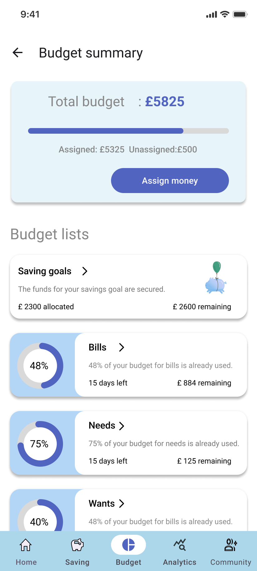 This was a meaningful project that tackled common challenges faced by first-time budgeters.Throughout the design and implementation process, I strengthened my core UX skills—especially in card-based UI design. I explored how to create diverse card layouts across different screens while maintaining a sense of consistency and visual harmony.