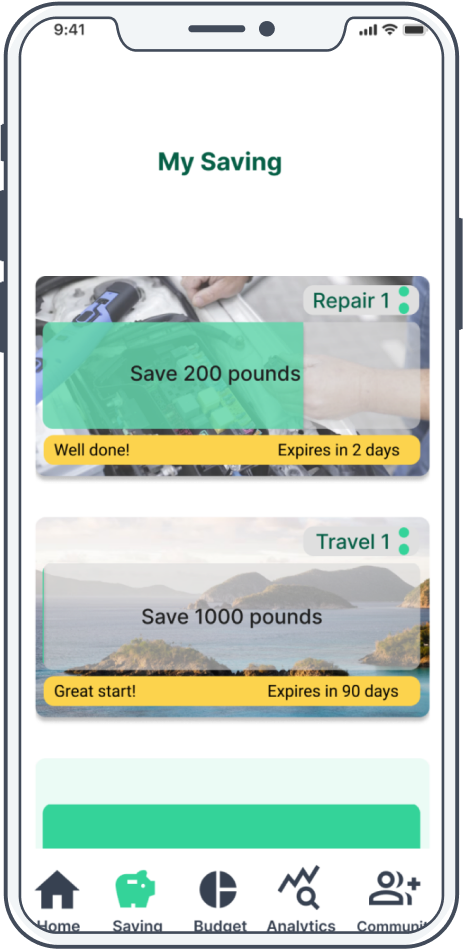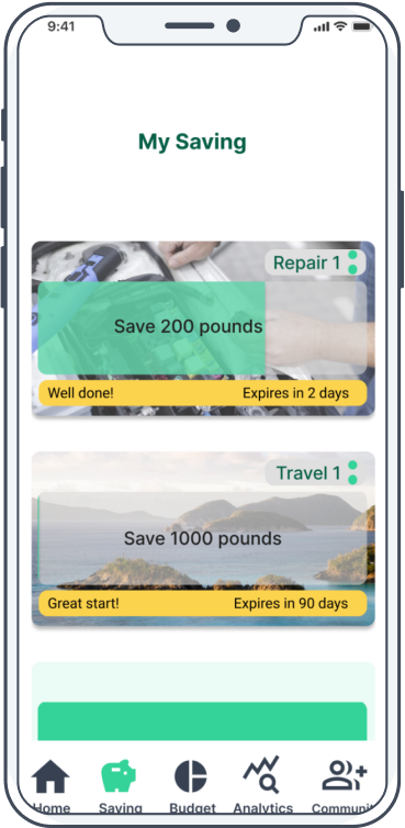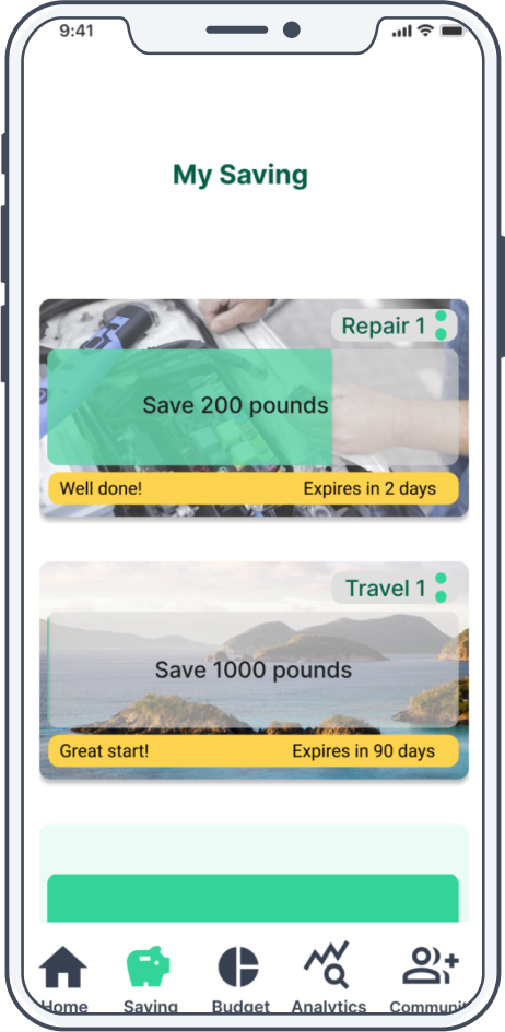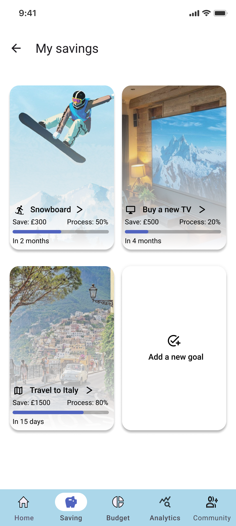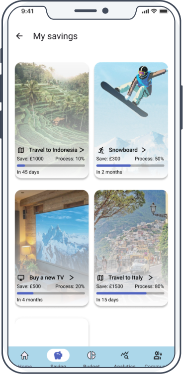 Use a simple, visual saving flow to help users easily reach their saving goals.