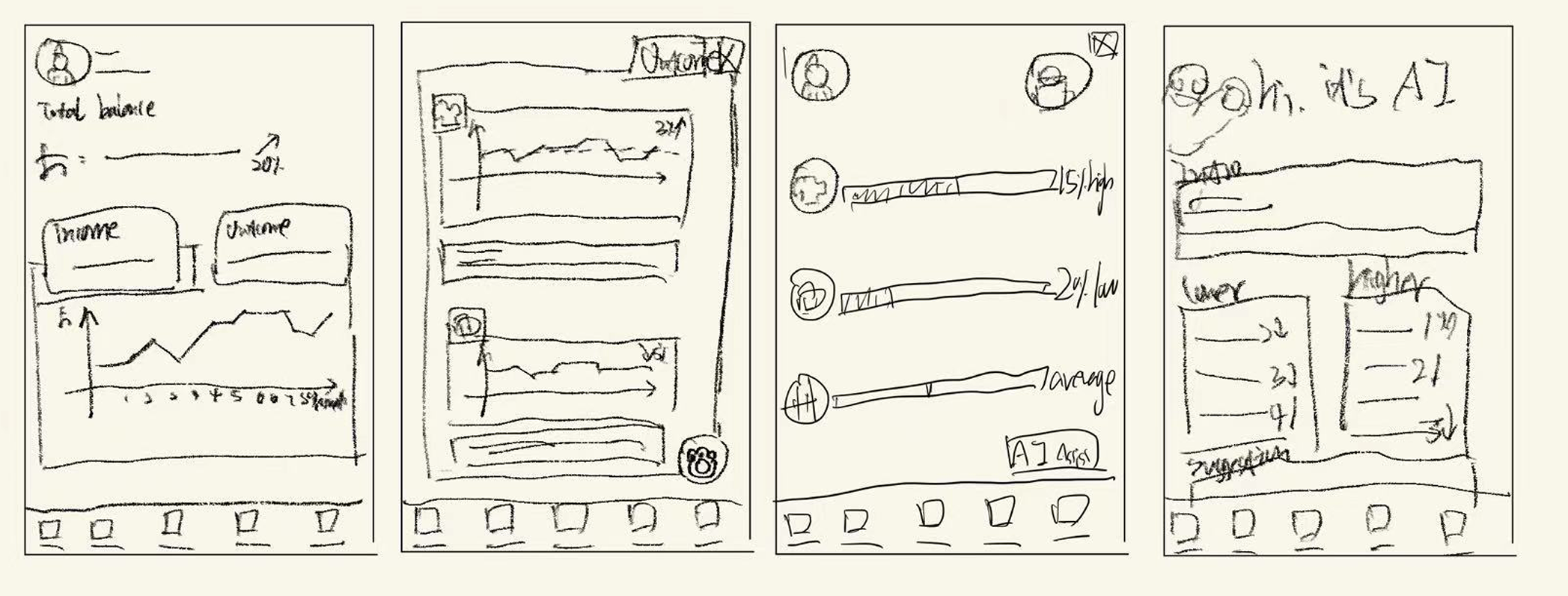 Based on the earlier sketches, I created low-fidelity prototypes to validate layout, user flows, and core interactions before moving into high-fidelity design.