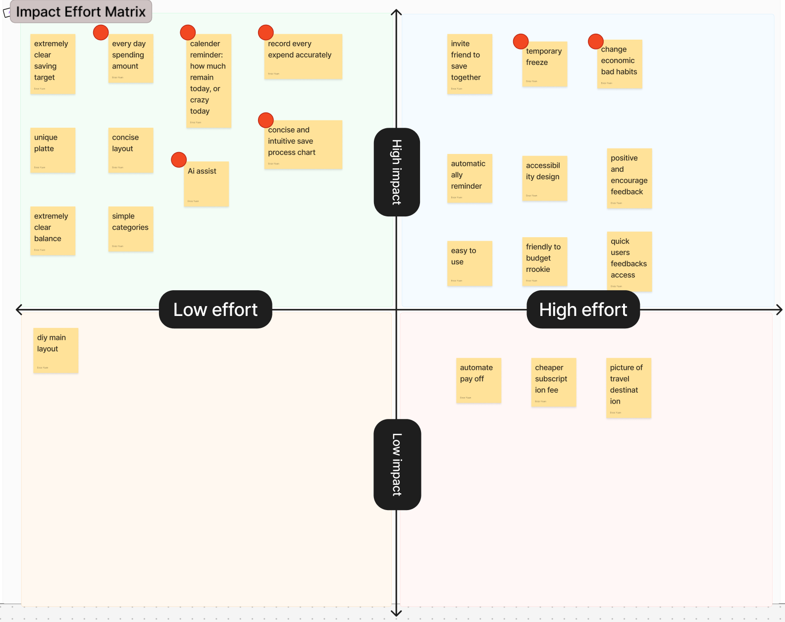 I used an Impact–Effort Matrix to prioritize ideas by balancing user value and implementation effort, helping me identify high-impact, low-effort features to focus on first.