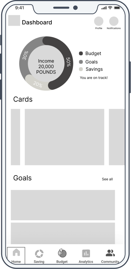 Based on earlier research, I organized the information architecture into clear, goal-oriented sections to help users easily track spending, manage savings, and review insights.